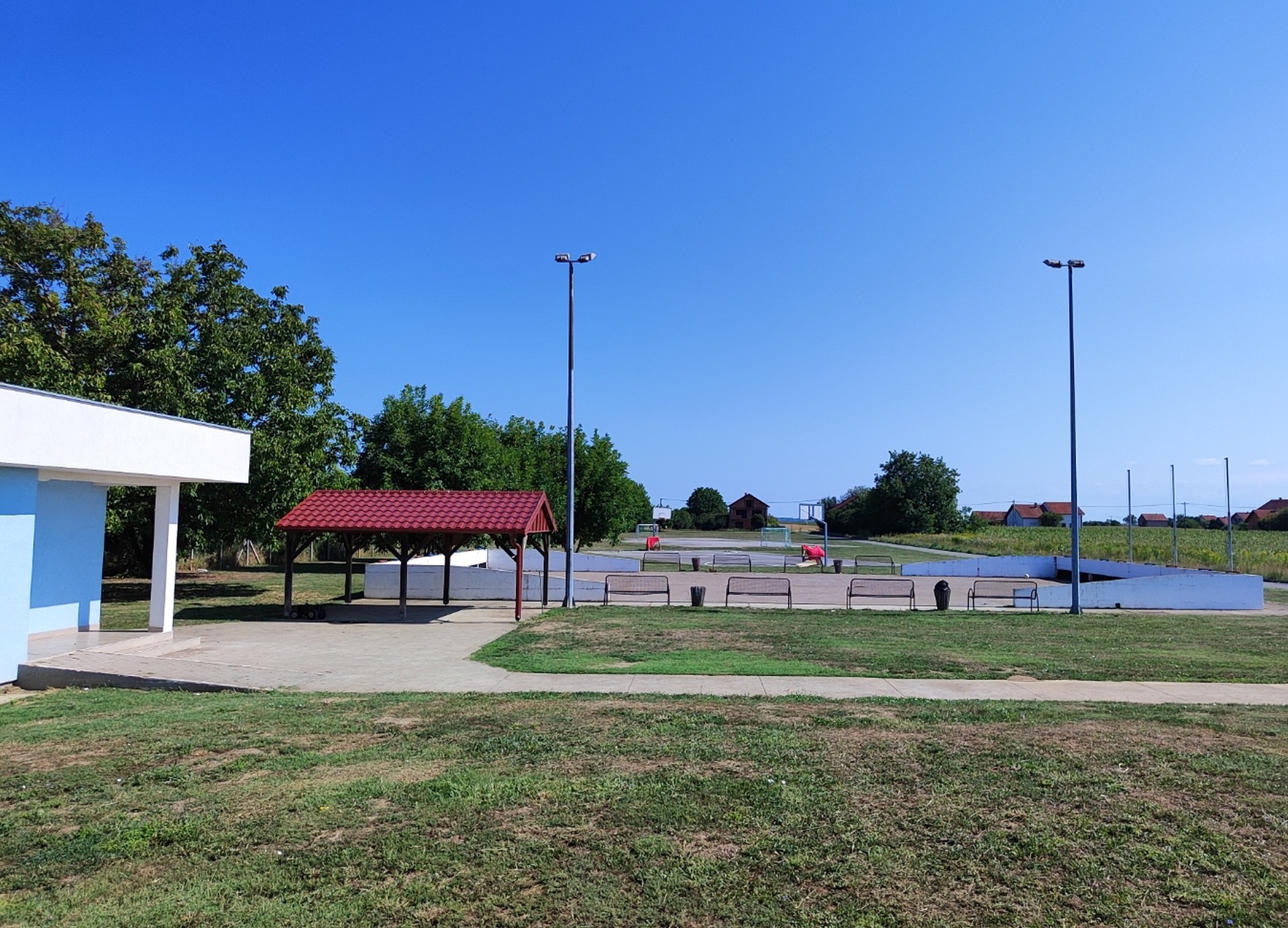 4 svlačionice i 36 sanitarnih čvorova, a u produžetku dvorane nalaze dva vanjska betonska igrališta s tribinama i boćalištem u nastavku